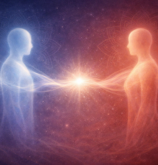 A silent exchange of awareness where understanding flows beyond words, thought, and physical presence.